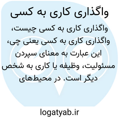 این عبارت به معنای سپردن مسئولیت، وظیفه یا کاری به شخص دیگر است. در محیطهای کاری یا اداری، مدیران ممکن است وظایفی را به کارکنان خود واگذار کنند تا انجام دهند.