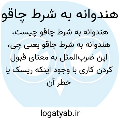 این ضربالمثل به معنای قبول کردن کاری با وجود اینکه ریسک یا خطر آن کاملاً مشخص است. مانند این است که کسی هندوانه میخرید ولی شرط میگذارد که خریدار چاقو بیاورد، یعنی باید خطر یا مشکل را خودش بپذیرد.