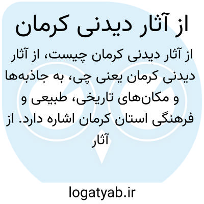 به جاذبهها و مکانهای تاریخی، طبیعی و فرهنگی استان کرمان اشاره دارد. از آثار دیدنی کرمان میتوان به باغ شاهزاده ماهان، ارگ بم، گنبد جبلیه، و شهر تاریخی ارگ راین اشاره کرد که هر کدام دارای ارزش تاریخی و گردشگری بالایی هستند.