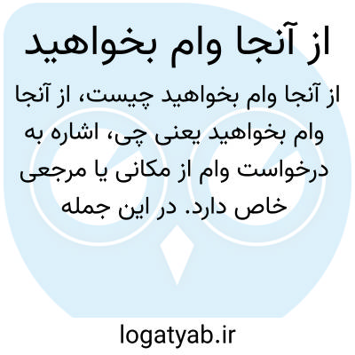 اشاره به درخواست وام از مکانی یا مرجعی خاص دارد. در این جمله مفهوم درخواست کمک مالی یا وام از یک نهاد، فرد یا مکان مشخص مطرح می‌شود.