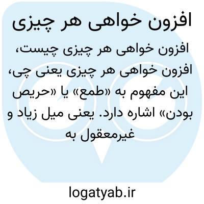 این مفهوم به «طمع» یا «حریص بودن» اشاره دارد. یعنی میل زیاد و غیرمعقول به داشتن بیش از حد یا فراتر از نیاز هر چیزی، که میتواند از دیدگاه اخلاقی مذموم تلقی شود.