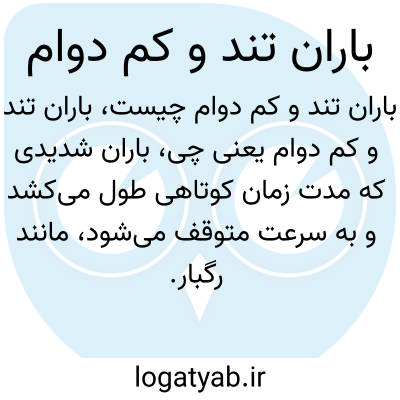 باران شدیدی که مدت زمان کوتاهی طول میکشد و به سرعت متوقف میشود، مانند رگبار.