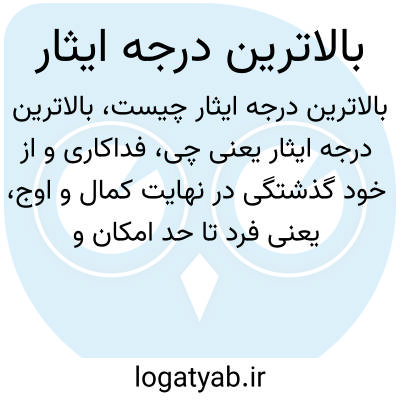 فداکاری و از خود گذشتگی در نهایت کمال و اوج، یعنی فرد تا حد امکان و بدون هیچ چشم‌داشتی، خود را برای دیگران و هدفی بزرگ وقف می‌کند.