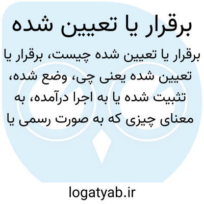 وضع شده، تثبیت شده یا به اجرا درآمده، به معنای چیزی که به صورت رسمی یا قانونی اعمال شده است.