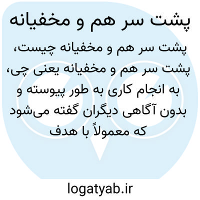 به انجام کاری به طور پیوسته و بدون آگاهی دیگران گفته میشود که معمولاً با هدف پنهان داشتن یا دور زدن افراد دیگر انجام میگیرد. این حالت میتواند در کارهای محرمانه، توطئه یا انجام وظایف مستمر بدون وقفه دیده شود.