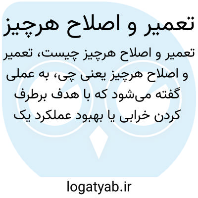 به عملی گفته میشود که با هدف برطرف کردن خرابی یا بهبود عملکرد یک شیء یا سیستم انجام میگیرد؛ تعمیر میتواند شامل تعویض قطعات، تنظیم و بازسازی باشد.