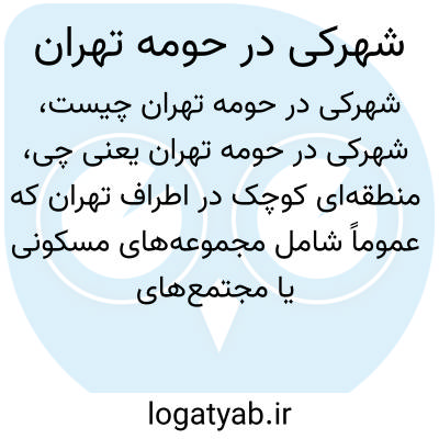 منطقهای کوچک در اطراف تهران که عموماً شامل مجموعههای مسکونی یا مجتمعهای تفریحی بوده و به عنوان محلی برای سکونت یا تفریح مورد استفاده قرار میگیرد. این شهرکها به دلیل آب و هوای بهتر و آرامش نسبی محبوب هستند.