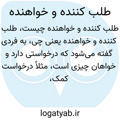 به فردی گفته میشود که درخواستی دارد و خواهان چیزی است، مثلاً درخواست کمک، اطلاعات یا چیزی مادی یا معنوی. این فرد معمولاً با احترام و ادب درخواست خود را بیان میکند.