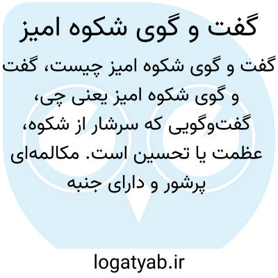 گفتوگویی که سرشار از شکوه، عظمت یا تحسین است. مکالمهای پرشور و دارای جنبه تمجید و بزرگداشت، ممکن است در وصف یک اتفاق یا شخصیت مهم اشاره شود.