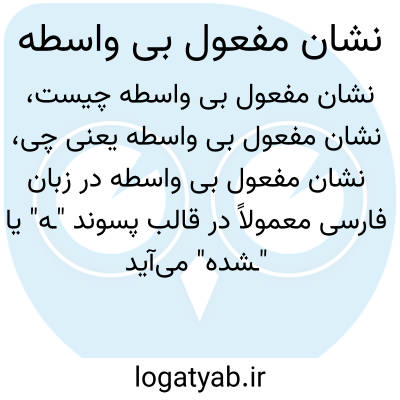 نشان مفعول بی واسطه در زبان فارسی معمولاً در قالب پسوند "ـه" یا "ـشده" می‌آید که به صورت مستقیم روی فعل یا اسم اضافه می‌شود و دلالت بر انجام شدن عملی بر روی مفعول دارد، مانند "خورده" به معنی چیزی که خورده شده است.