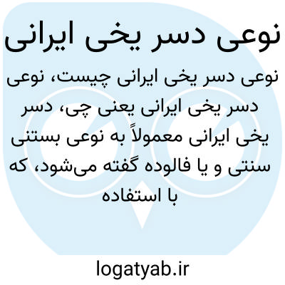 دسر یخی ایرانی معمولاً به نوعی بستنی سنتی و یا فالوده گفته میشود، که با استفاده از مواد طبیعی نظیر شکر، آب و گاه گلاب تهیه میشود و بسیار خنک و مناسب تابستان است.
