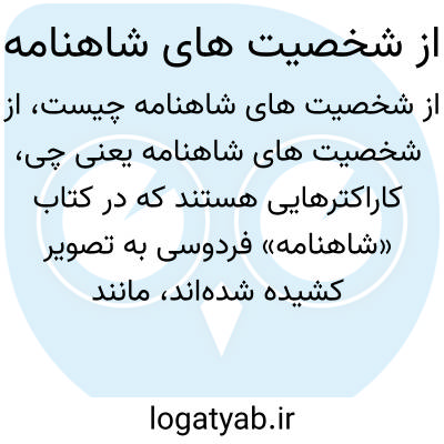 کاراکترهایی هستند که در کتاب «شاهنامه» فردوسی به تصویر کشیده شدهاند، مانند رستم، سهراب، کیکاووس، که هر کدام داستان و ویژگیهای خاص خود را دارند.