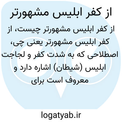 اصطلاحی که به شدت کفر و لجاجت ابلیس (شیطان) اشاره دارد و معروف است برای بیان کسی که از افراد بسیار کافر یا لجوج بدتر است یا بدنامتر از کفر ابلیس شناخته میشود. این عبارت معمولاً در متون دینی برای تأکید به گناه بسیار بزرگ به کار میرود.