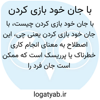 این اصطلاح به معنای انجام کاری خطرناک یا پرریسک است که ممکن است جان فرد را به خطر بیندازد. مثلاً فردی که بدون تجهیزات مناسب در کوه‌های بلند صعود می‌کند، گفته می‌شود "با جان خود بازی می‌کند". این عبارت معمولاً برای هشدار دادن به کسی استفاده می‌شود که رفتار بی‌ملاحظه یا بی‌احتیاطانه‌ای دارد.
