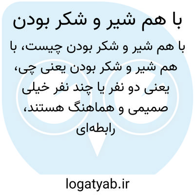 یعنی دو نفر یا چند نفر خیلی صمیمی و هماهنگ هستند، رابطه‌ای بسیار دوستانه و شیرین دارند؛ مثل ترکیب شیر و شکر که با هم ترکیب خوشایندی می‌سازند.