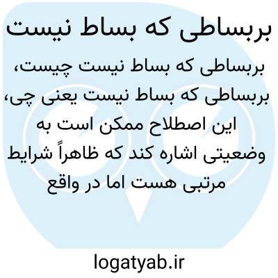 این اصطلاح ممکن است به وضعیتی اشاره کند که ظاهراً شرایط مرتبی هست اما در واقع بی‌نظم و بی‌بنیاد است؛ یعنی «بربساطی» به معنی گستردگی و نظم ظاهری است ولی «بساط نیست» یعنی آن نظم واقعی و پایدار وجود ندارد.