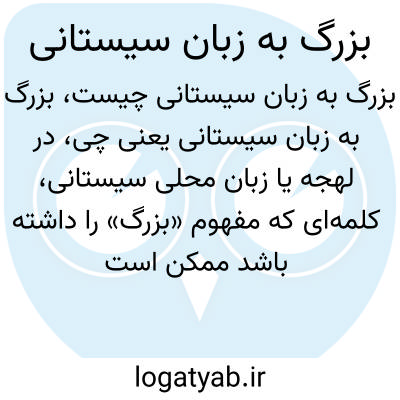 در لهجه یا زبان محلی سیستانی، کلمه‌ای که مفهوم «بزرگ» را داشته باشد ممکن است متفاوت از فارسی معیار باشد و معمولاً به عنوان صفات بزرگی افراد، اشیاء یا مکان‌ها به کار می‌رود.