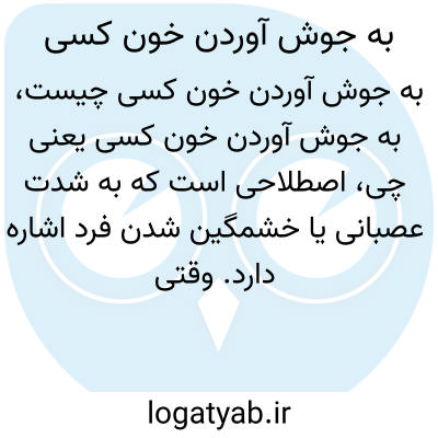 اصطلاحی است که به شدت عصبانی یا خشمگین شدن فرد اشاره دارد. وقتی گفته میشود خون کسی به جوش آمده، منظور این است که آن فرد ظرفیتی برای تحمل شرایط ندارد و کاملاً خشمگین شده است.