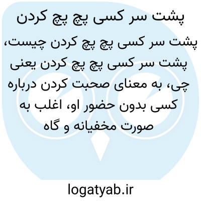 به معنای صحبت کردن درباره کسی بدون حضور او، اغلب به صورت مخفیانه و گاه به قصد انتقاد یا غیبت کردن از آن شخص است.
