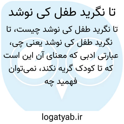 عبارتی ادبی که معنای آن این است که تا کودک گریه نکند، نمیتوان فهمید چه زمانی آرام خواهد گرفت؛ اشاره به ناامنی و نیاز به بیان یا اعتراض برای رسیدن به آرامش دارد.