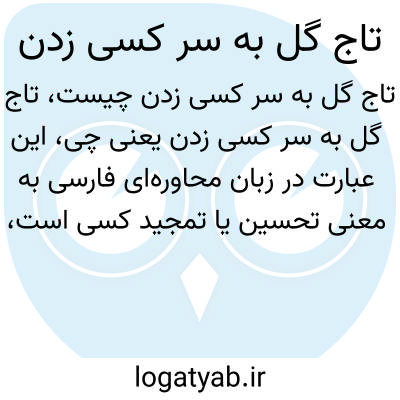 این عبارت در زبان محاوره‌ای فارسی به معنی تحسین یا تمجید کسی است، به‌گونه‌ای که انگار برای او تاج گل گذاشته شده است. به طور کنایه‌آمیز به تعظیم یا بزرگداشت کسی پس از موفقیتی اشاره دارد.