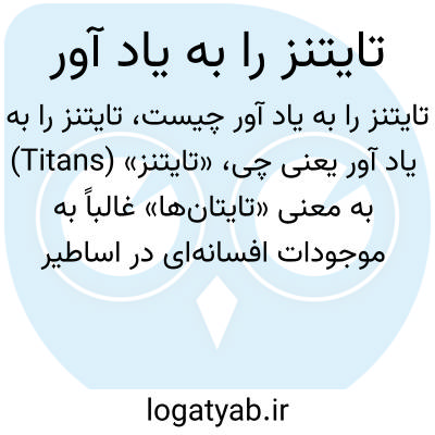 «تایتنز» (Titans) به معنی «تایتان‌ها» غالباً به موجودات افسانه‌ای در اساطیر یونان یا نام تیم‌های ورزشی اشاره دارد. این عبارت احتمالاً دعوت به یادآوری یا به خاطر آوردن چیزی مرتبط با تایتان‌ها است، شاید در فیلم، تاریخ یا فرهنگ عمومی.