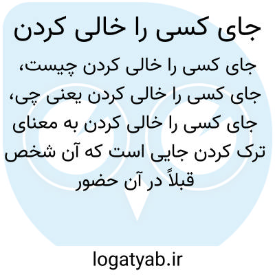 جای کسی را خالی کردن به معنای ترک کردن جایی است که آن شخص قبلاً در آن حضور داشته یا نقشی داشته است. این تعبیر معمولاً وقتی به کار می‌رود که فردی به هر دلیل (مانند مرگ، مهاجرت یا تغییر موقعیت) دیگر در محل یا موقعیتی حضور ندارد.