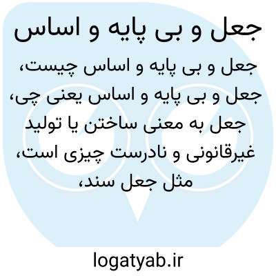 جعل به معنی ساختن یا تولید غیرقانونی و نادرست چیزی است، مثل جعل سند، امضا یا اطلاعات. بی پایه و اساس نیز به چیزی گفته می‌شود که هیچ دلیل یا مدرک محکمی برای صحت آن وجود ندارد و نمی‌توان به آن اعتماد کرد.
