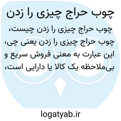 این عبارت به معنی فروش سریع و بی‌ملاحظه یک کالا یا دارایی است، معمولاً با قیمت پایین‌تر از ارزش واقعی آن. به عبارت دیگر، وقتی کسی "چوب حراج چیزی را می‌زند"، قصد دارد کالای خود را سریع بفروشد، حتی به قیمت از دست دادن سود بیشتر.
