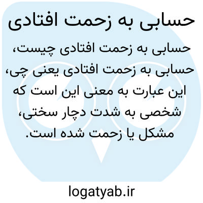 این عبارت به معنی این است که شخصی به شدت دچار سختی، مشکل یا زحمت شده است. معمولاً وقتی کسی در شرایط دشوار یا بحرانی قرار دارد گفته میشود "حسابی به زحمت افتادی"، به نوعی تأکید بر شدت دردسر یا مشکلات پیشآمده است.
