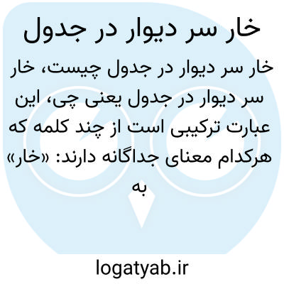 این عبارت ترکیبی است از چند کلمه که هرکدام معنای جداگانه دارند: «خار» به معنای تیغ یا برگ نوکتیز گیاه است، «سر دیوار» به بخش بالایی دیوار اشاره دارد، و «جدول» معمولاً به ستون یا جدول در متون گفته میشود. این ترکیب به صورت اصطلاح خاصی فارسی نیست و معنا مشخصی ندارد.