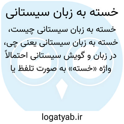 در زبان و گویش سیستانی احتمالاً واژه «خسته» به صورت تلفظ یا واژهای متفاوت بیان میشود، ولی معنای آن همان احساس بیحالی، ناتوانی و ضعف جسمانی است.