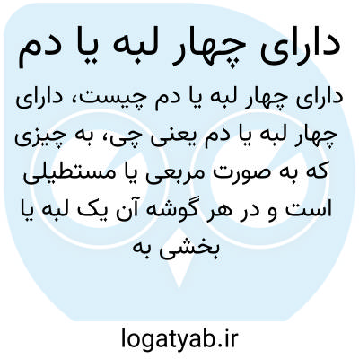 به چیزی که به صورت مربعی یا مستطیلی است و در هر گوشه آن یک لبه یا بخشی به شکل دم وجود دارد، اشاره دارد. این توصیف ممکن است برای اشیاء هندسی مثل جعبه یا اشیاء طبیعی که چهار قسمت مشخص دارند به کار برود.