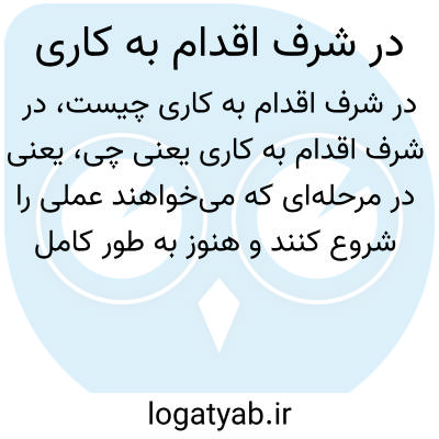 یعنی در مرحلهای که میخواهند عملی را شروع کنند و هنوز به طور کامل آغاز نشده اما نزدیک به انجام است.