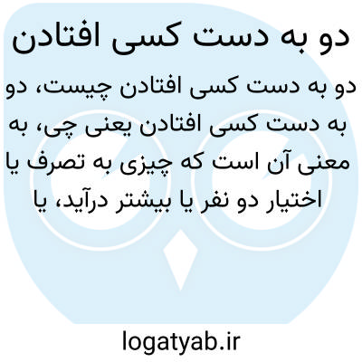 به معنی آن است که چیزی به تصرف یا اختیار دو نفر یا بیشتر درآید، یا اینکه امری بین دو نفر تقسیم شود، اما در متون روزمره کمتر دیده می‌شود و معنای دقیق‌تری بستگی به زمینه دارد.