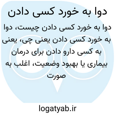 یعنی به کسی دارو دادن برای درمان بیماری یا بهبود وضعیت، اغلب به صورت استعاره‌ای به معنای ارائه راهکار یا وسیله‌ای برای حل مشکل نیز به کار می‌رود.