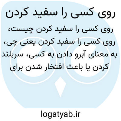 به معنای آبرو دادن به کسی، سربلند کردن یا باعث افتخار شدن برای آن فرد است. وقتی کسی کاری می‌کند که باعث شود فرد دیگر به سرافرازی و احترام برسد، گفته می‌شود روی او را سفید کرده است.