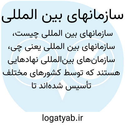 سازمان‌های بین‌المللی نهادهایی هستند که توسط کشورهای مختلف تأسیس شده‌اند تا در زمینه‌های گوناگون مانند امنیت، اقتصاد، فرهنگ و محیط زیست همکاری کنند. نمونه‌هایی از این سازمان‌ها شامل سازمان ملل، اتحادیه اروپا و سازمان جهانی بهداشت می‌باشند.