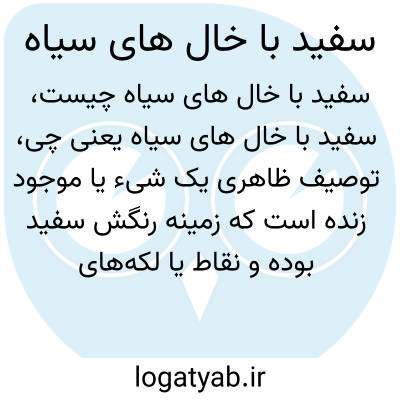 توصیف ظاهری یک شیء یا موجود زنده است که زمینه رنگش سفید بوده و نقاط یا لکه‌های سیاه روی آن وجود دارد. این ترکیب رنگی معمولاً در زمینه حیوانات یا اشیاء برای توصیف الگوهای بصری به کار می‌رود.
