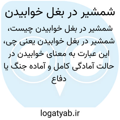 این عبارت به معنای خوابیدن در حالت آمادگی کامل و آماده جنگ یا دفاع است. در زمان‌های قدیم، افراد نظامی یا جنگاوران ممکن بود با شمشیر یا سلاحی در کنار خود بخوابند تا در صورت حمله ناگهانی سریع واکنش نشان دهند.