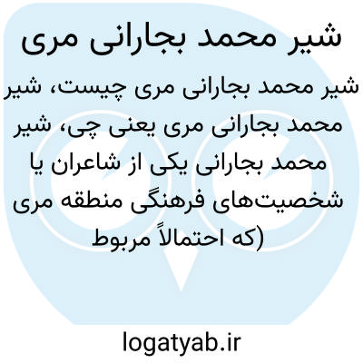 شیر محمد بجارانی یکی از شاعران یا شخصیت‌های فرهنگی منطقه مری (که احتمالاً مربوط به مناطق جنوب یا بلوچستان باشد) است. نام او با ادبیات و فرهنگ محلی مرتبط است و آثار او ممکن است بازتاب‌دهنده زندگی مردم آن منطقه و تاریخچه آنها باشد.