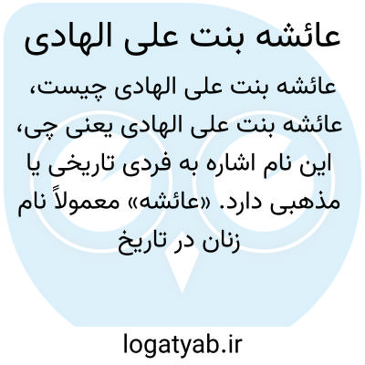 این نام اشاره به فردی تاریخی یا مذهبی دارد. «عائشه» معمولاً نام زنان در تاریخ اسلامی است و «علی الهادی» یکی از امامان شیعیان دوازده امامی است؛ بنابراین عائشه بنت علی الهادی می‌تواند اشاره به دختر امام علی نقی (الهادی) باشد.