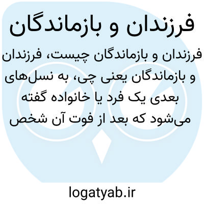 به نسلهای بعدی یک فرد یا خانواده گفته میشود که بعد از فوت آن شخص باقی ماندهاند. بازماندگان شامل فرزندان، نوهها، و دیگر نسبها میشوند که حقوق و دارایی یا میراث ممکن است به آنها منتقل شود و نقش فرهنگی و اجتماعی مهمی در حفظ یاد و خاطره فرد دارند.