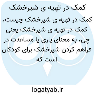 به معنای یاری یا مساعدت در فراهم کردن شیرخشک برای کودکان است که میتواند شامل تهیه مالی، تامین اقلام یا حمایت مستقیم برای تغذیه سالم کودکان باشد. این کمک به ویژه در شرایط بحران یا فقر اهمیت دارد.
