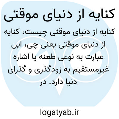 این عبارت به نوعی طعنه یا اشاره غیرمستقیم به زودگذری و گذرای دنیا دارد. در ادبیات فارسی و فرهنگ عامه، دنیا به عنوان مکانی ناپایدار، پر از تغییر و زودگذری شناخته میشود و «دنیای موقتی» اشاره به ناپایداری و گذر زمان و لذتهای زودگذر دارد.