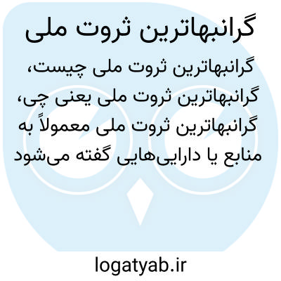 گرانبهاترین ثروت ملی معمولاً به منابع یا داراییهایی گفته میشود که بیشترین ارزش اقتصادی و فرهنگی را برای یک کشور دارند، مانند منابع طبیعی (نفت، گاز)، دانش و نیروی انسانی، میراث فرهنگی و تاریخی، که نقش بسیار مهمی در پیشرفت اقتصادی و اجتماعی آن کشور دارند.