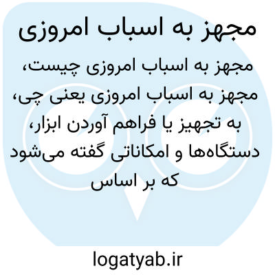به تجهیز یا فراهم آوردن ابزار، دستگاهها و امکاناتی گفته میشود که بر اساس تکنولوژی و دانش روز ساخته شدهاند و کارایی و کیفیت بهتری نسبت به نمونههای قدیمی دارند. این عبارت معمولاً برای مکانها، تجهیزات یا وسایل توصیفکننده پیشرفت و بهروز بودن است.
