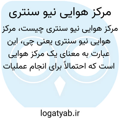 این عبارت به معنای یک مرکز هوایی است که احتمالاً برای انجام عملیات هوایی، آموزش خلبانی یا کنترل ترافیک هوایی در منطقهای به نام "نیو سنتری" واقع شده است. مراکز هوایی معمولاً شامل فرودگاهها یا پایگاههای هوایی میشوند و نقش مهمی در حملونقل هوایی دارند.