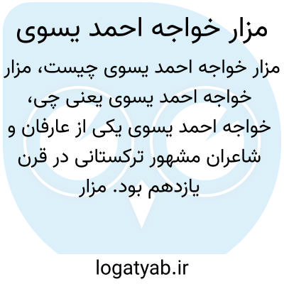 خواجه احمد یسوی یکی از عارفان و شاعران مشهور ترکستانی در قرن یازدهم بود. مزار او، یعنی محل دفن و آرامگاهش، در شهر تورغندی قزاقستان واقع شده است و به عنوان مکانی مقدس و زیارتی برای پیروان تصوف و مسلمانان منطقه شناخته میشود.