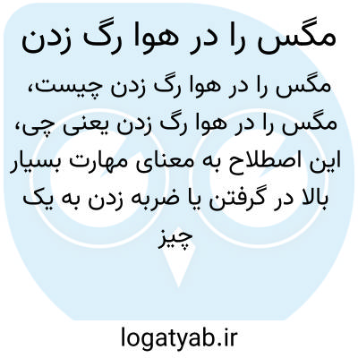 این اصطلاح به معنای مهارت بسیار بالا در گرفتن یا ضربه زدن به یک چیز کوچک و سریع در هوا است که نشاندهنده چابکی و دقت است، مانند گرفتن مگس در حال پرواز با دست.